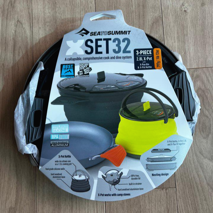 SEATOSUMMIT SET 32은 X-POT 2.8L(냄비), X-POT 20CM(프라이팬), X-POT 1.3L(주전자) 3피스 구성입니다.